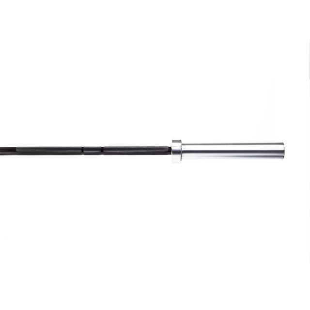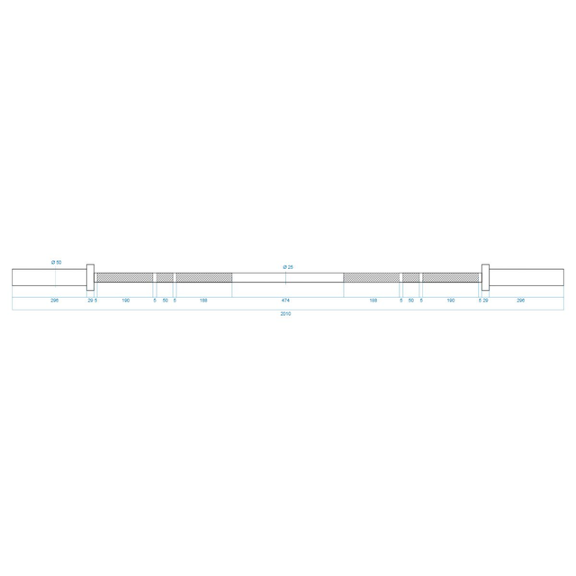 De stang is uitgerust met naaldlagers die zorgen voor een soepele rotatie van de schijfhouders en een langere levensduur. Twee meegeleverde klemmen met rubberen binnenzijde zorgen voor een stabiele en veilige bevestiging van de gewichten tijdens het trainen.